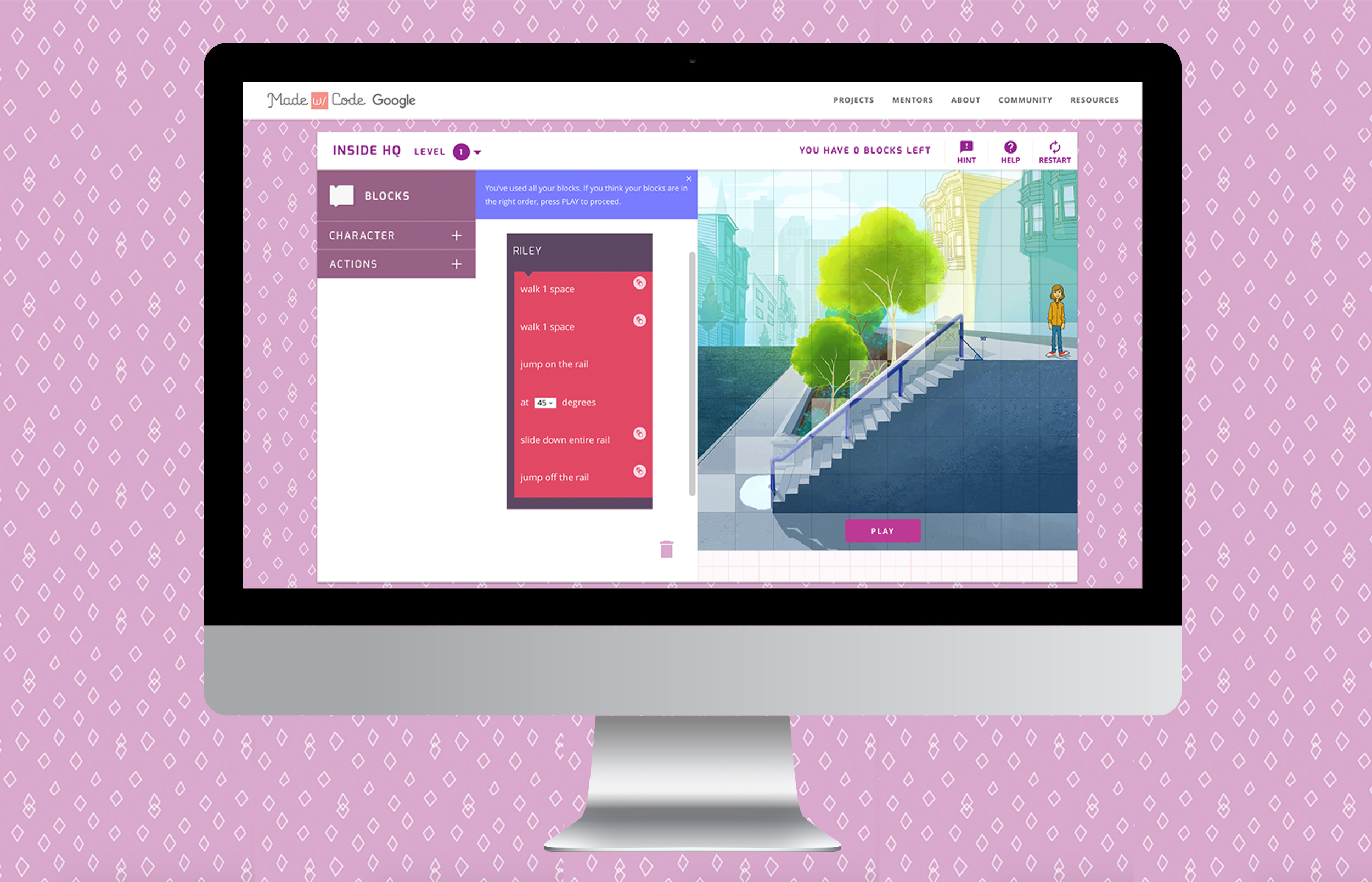 Made with Code is an initiative by Google designed to encourage young girls to code, introducing fundamental concepts using their visual system, Blockly.
