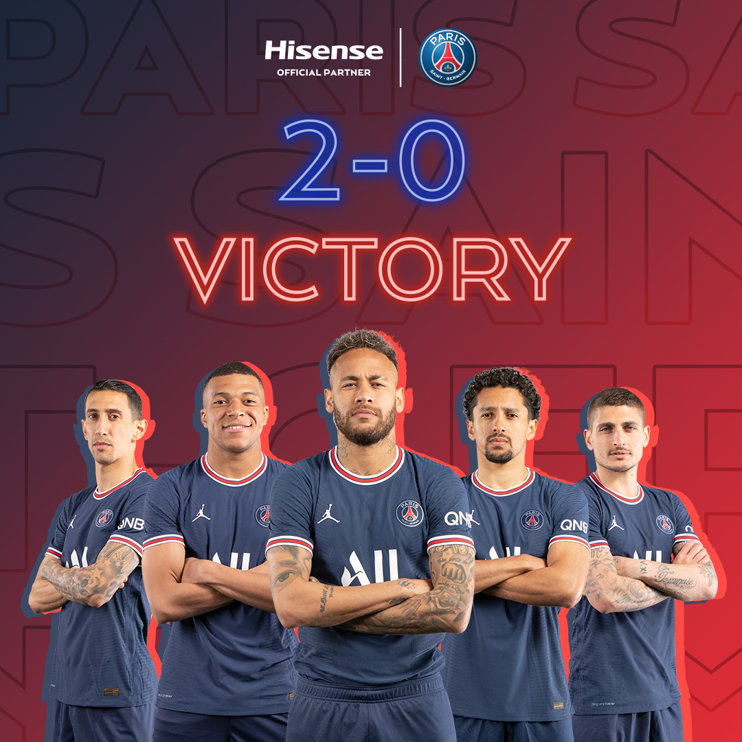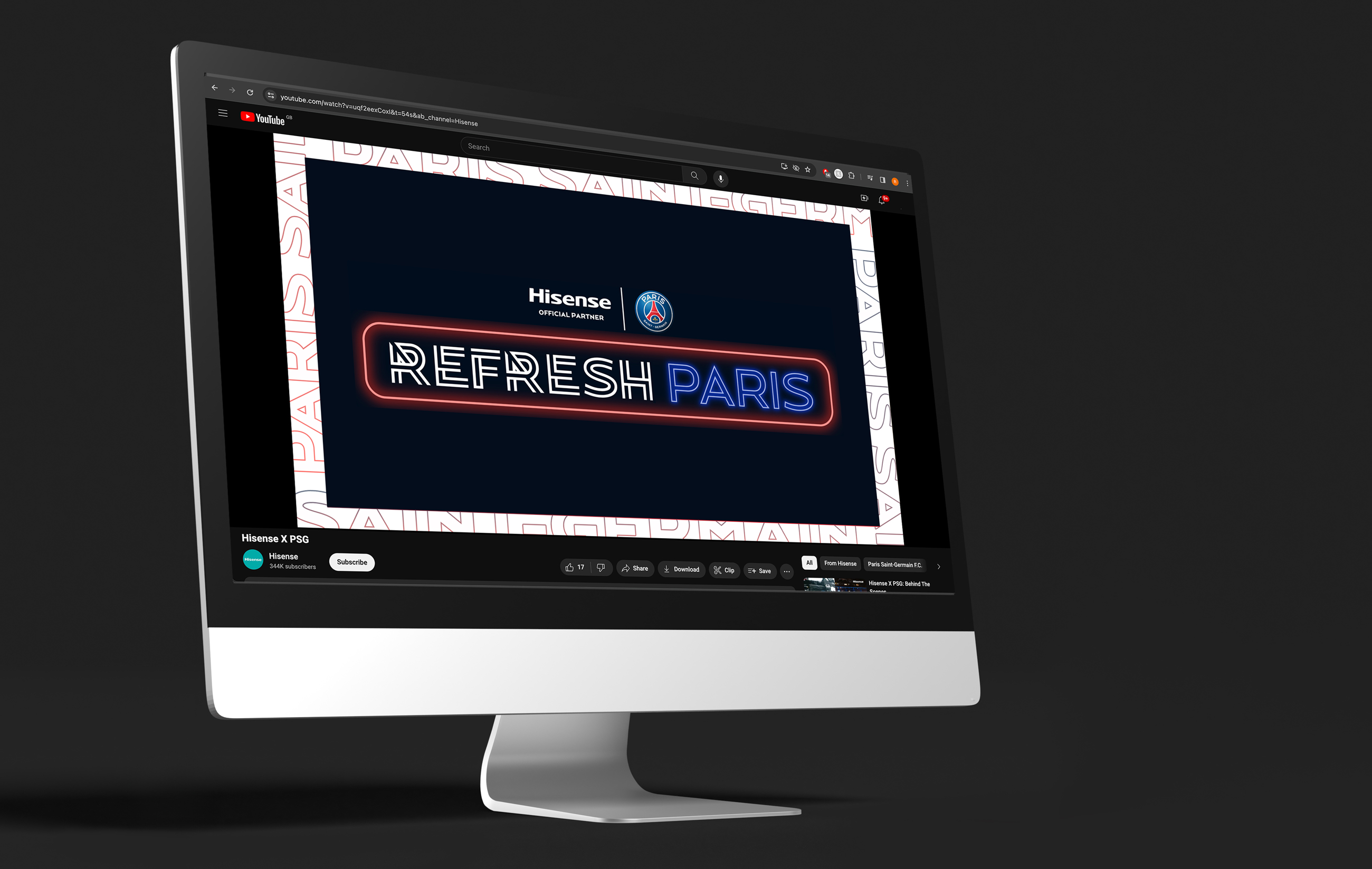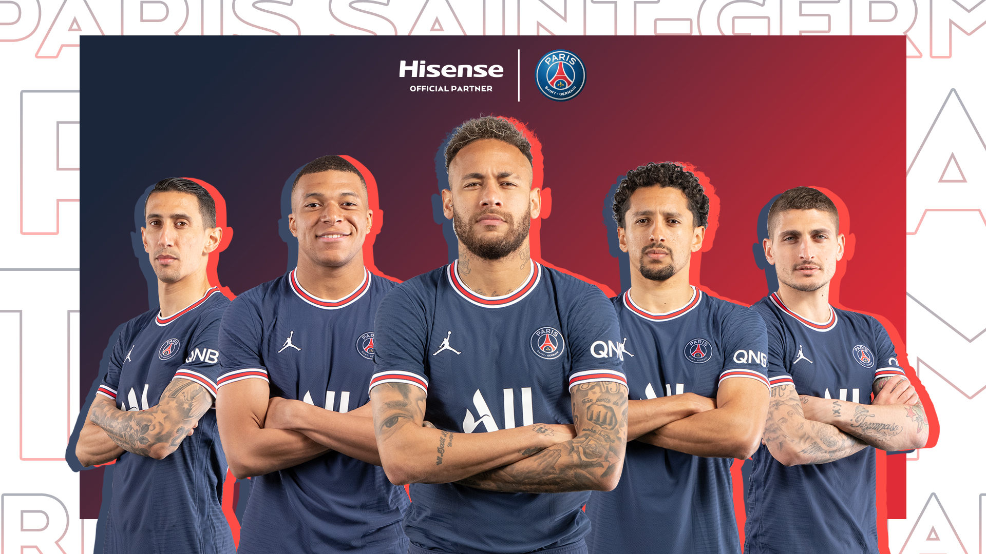 A typographically-led identity incorporating Paris St Germain’s club colours, providing a uniquely energetic and bold look for brand partner Hisense’s social media content.