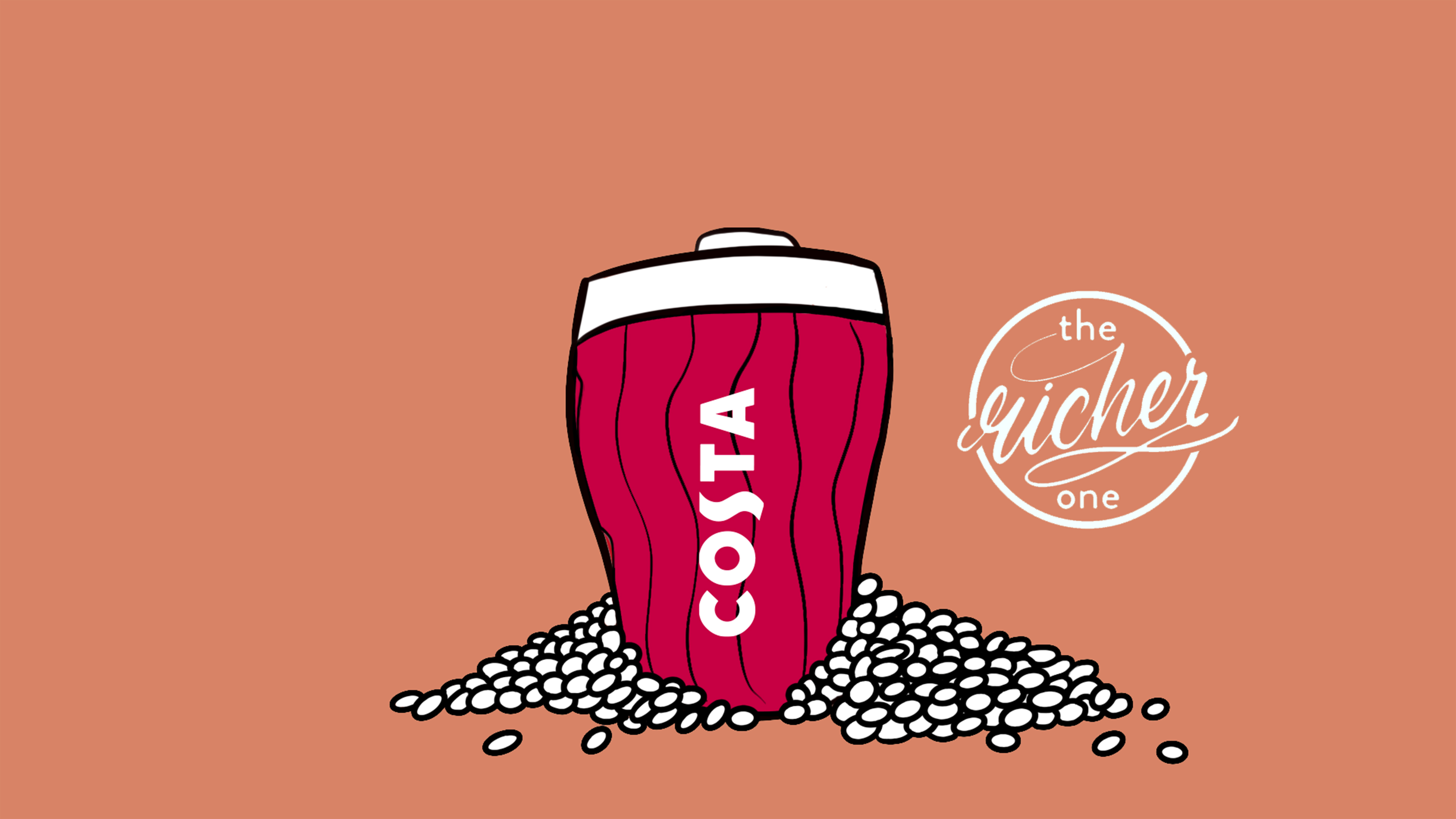 Each milk was given a different personality through colour, a unique typographical loyalty card style stamp, and a playful hand-drawn illustration style with the re-usable Costa cup as the centrepiece, and this proposition: Your default choice is good, but we have an even better-tasting alternative…The New Natural.
