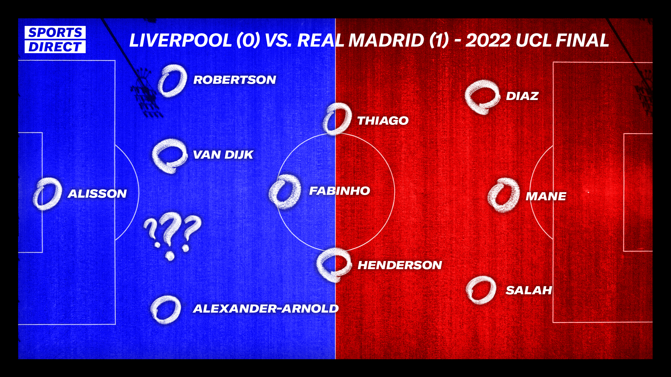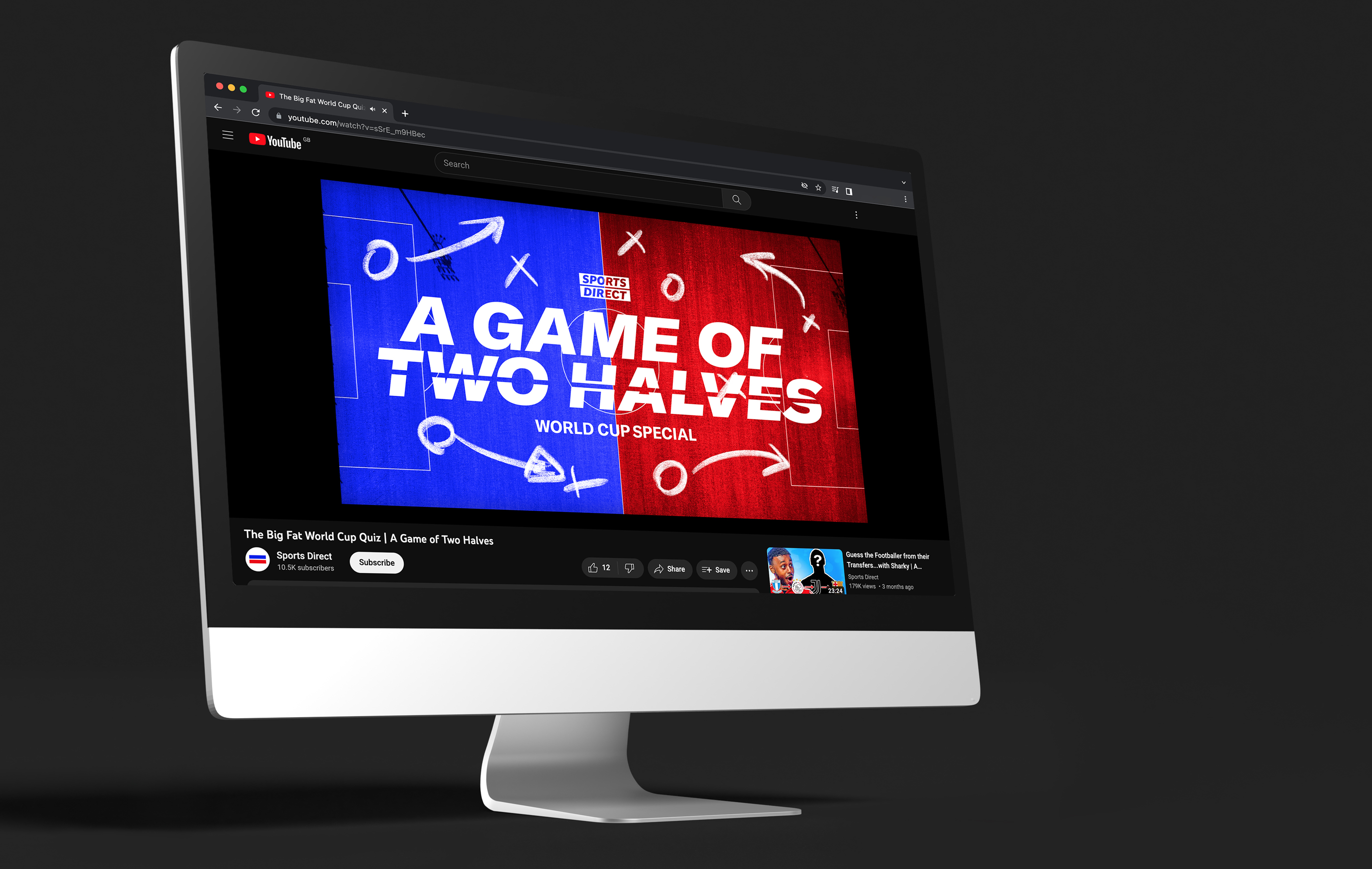 Title card & In-studio graphics re-design for Sports Direct’s Youtube show ‘A Game of Two Halves , combining bold typography & colours with old-school chalkboard tactic-board-style elements to refresh the brand look and feel across the key art and in-studio graphics.